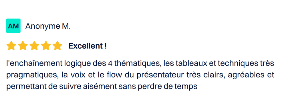 Plus de 4 heures de formation répartie en 5 modulesprogressifs.