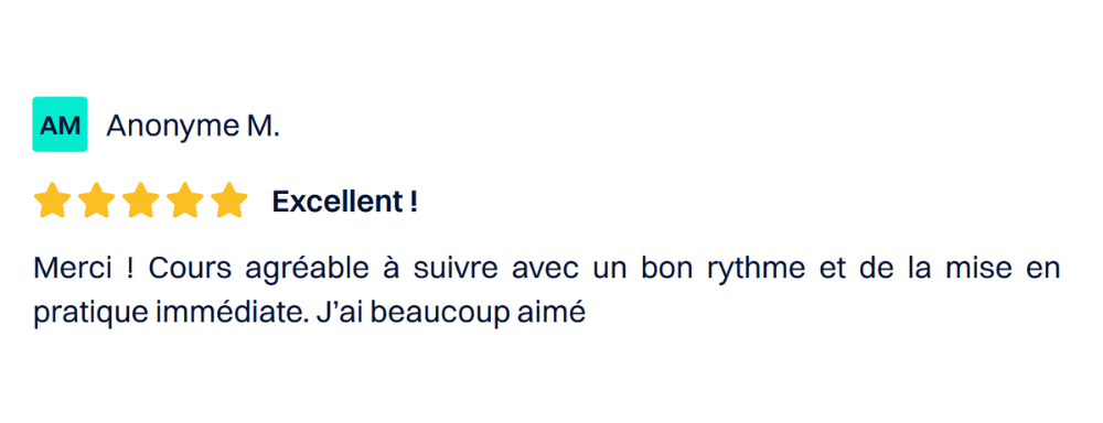 Oui. Vous bénéficiez d'un droit de rétractation de 14 jours sans conditions, si vous constatez que la formation ne vous apporte pas pleinement satisfaction.